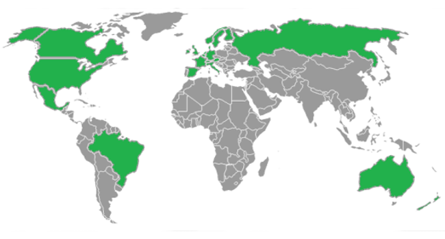 El Xbox One fue lanzado en un principio en los países marcados con verde