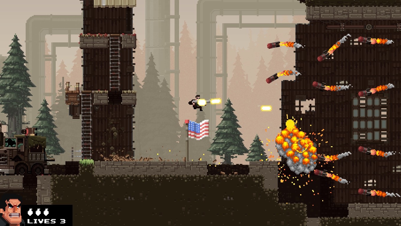 Si no tienen ni la mas mínima idea de que es The Expendabros es un juego donde usamos a personalidades de la talla de Broney Ross, Bronar Jensen o Bro Ceasar en un juego retacadisimo de acción (piensen en algo tipo Contra o Metal Slug llevado al extremo) donde las balaceras y explosiones están por doquier y donde podemos «crear» nuestros propios caminos al dispararle al terreno si creemos que no nos favorece la ruta normal siendo esta una de sus principales cosas que lo diferencian con otros juegos por el estilo (eso sí mucho ojo con no cavar tu propia tumba).