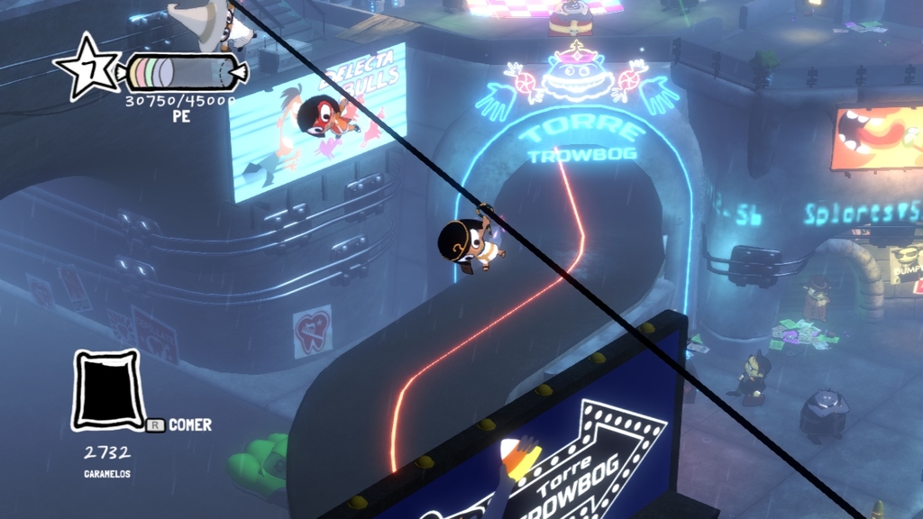 Otra cosa que también cambia mucho el flujo de las peleas son las diferentes cartas de «Tratos con truco» que podremos obtener a lo largo del juego (ya sea hallándolas o comprándolas) con las que obtendremos ciertas ventajas en el juego teniendo cartas que nos permitan atacar doble con uno de nuestros personajes, otras que nos permiten aturdir a nuestros enemigos e incluso algunas con las que tendremos más experiencia o más dulces al final de una batalla (hay bastante de donde elegir).