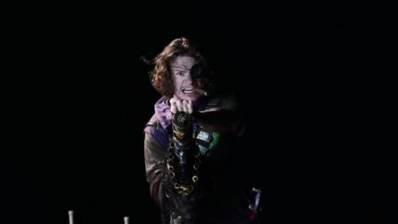 Esta extraña presentación finaliza con un atentado contra la presentadora (hecho por el hombre que perdió una mano al ser absorbida por un monitor come dinero el año pasado) y su rehabilitación como un robot (parodia de Robocop para explicarlo mejor).