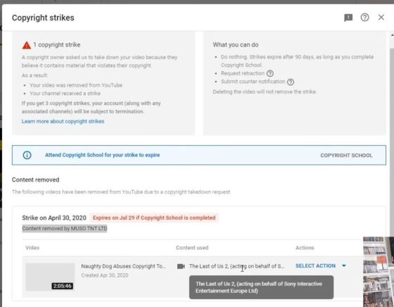 El youtuber Jeremy Prime (del canal Geeks + Gamers) da fiel testimonio de esto, al mostrar la información sobre como un vídeo donde hablaba sobre The Last of Us 2, fue eliminado alegando que había usado material protegido por derechos de autor siendo que no es cierto eso.