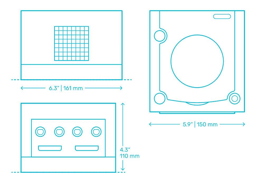 El GameCube tiene dimensiones de 15cm * 16.1cm * 11cm y las del Xbox Series X 16cm * 16cm * 31cm, si ponemos un GameCube uno encima del otro sería una buena referencia para saber el tamaño real de la consola de Microsoft (mucho más pequeña de lo que parece).
