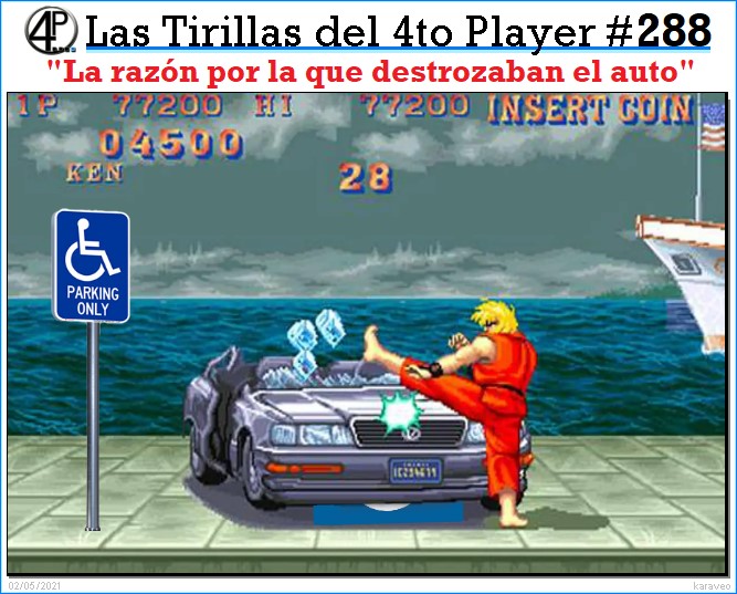 Al ser los videojuegos una obra de ficción no es necesario justificar la violencia o el vandalismo que ocurre dentro de ella, pero gracias al sentido del humor uno se puede imaginar una razón validad para las acciones de los personajes que utilizamos (aunque es difícil justificar a los policías de NARC por ejemplo). Tomando como base esa «justificación» quisimos trasladar esa idea a una tirilla, inspirándonos en la icónica escena de bonus de Street Fighter II donde peleas contra un indefenso automóvil (no lo intenten en la vida real).
