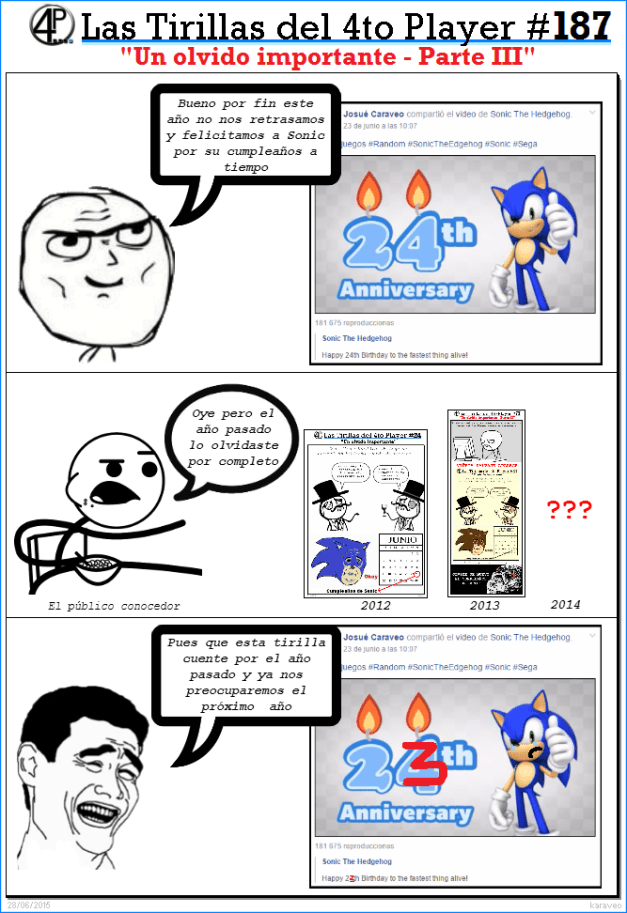 Los problemas técnicos siguen invandiendo «Las Tirillas domingueras del 4to Player» pero como siempre contra viento y marea (no literalmente los servidores del sitio están muy alejados de las costas) aquí las tenemos de vuelta (perdón por el patatús que le dimos a algunos sin querer al ver que las tirillas no aparecían):
